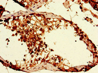 Immunohistochemistry of paraffin-embedded human testis tissue using CSB-PA004510LA01HU at dilution of 1:100