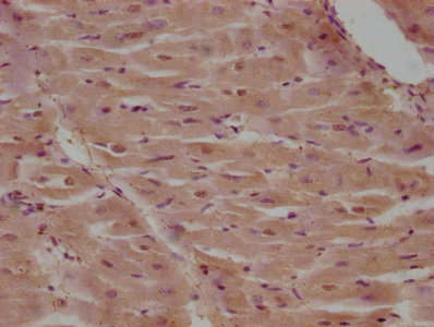 IHC image of CSB-PA004521LA01HU diluted at 1:100 and staining in paraffin-embedded human heart tissue performed on a Leica BondTM system. After dewaxing and hydration, antigen retrieval was mediated by high pressure in a citrate buffer (pH 6.0). Section was blocked with 10% normal goat serum 30min at RT. Then primary antibody (1% BSA) was incubated at 4°C overnight. The primary is detected by a biotinylated secondary antibody and visualized using an HRP conjugated SP system.