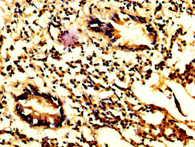 IHC image of CSB-PA15479A0Rb diluted at 1:200 and staining in paraffin-embedded human appendix tissue performed on a Leica BondTM system. After dewaxing and hydration, antigen retrieval was mediated by high pressure in a citrate buffer (pH 6.0). Section was blocked with 10% normal goat serum 30min at RT. Then primary antibody (1% BSA) was incubated at 4°C overnight. The primary is detected by a biotinylated secondary antibody and visualized using an HRP conjugated SP system.