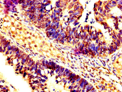 IHC image of CSB-PA15479A0Rb diluted at 1:200 and staining in paraffin-embedded human ovarian cancer performed on a Leica BondTM system. After dewaxing and hydration, antigen retrieval was mediated by high pressure in a citrate buffer (pH 6.0). Section was blocked with 10% normal goat serum 30min at RT. Then primary antibody (1% BSA) was incubated at 4°C overnight. The primary is detected by a biotinylated secondary antibody and visualized using an HRP conjugated SP system.