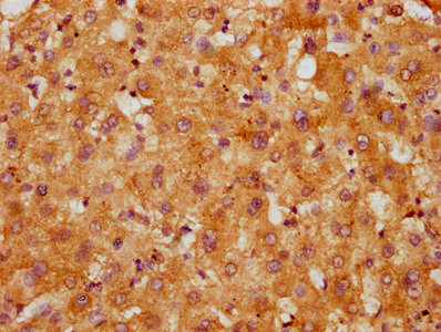 IHC image of CSB-PA866287LA01HU diluted at 1:200 and staining in paraffin-embedded human liver tissue performed on a Leica BondTM system. After dewaxing and hydration, antigen retrieval was mediated by high pressure in a citrate buffer (pH 6.0). Section was blocked with 10% normal goat serum 30min at RT. Then primary antibody (1% BSA) was incubated at 4°C overnight. The primary is detected by a biotinylated secondary antibody and visualized using an HRP conjugated SP system.