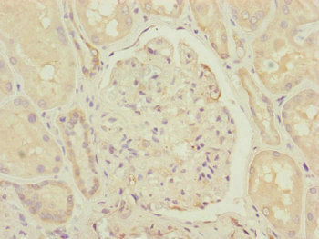 Immunohistochemistry of paraffin-embedded human kidney tissue using CSB-PA004769ESR2HU at dilution of 1:100