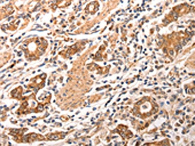 The image is immunohistochemistry of paraffin-embedded human gastric cancer tissue using CSB-PA113746(CCL17 Antibody) at dilution 1/70. (Original magnification: ×200)