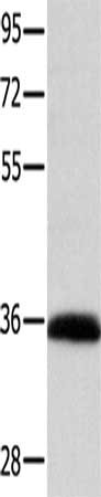 Gel: 10%SDS-PAGE, Lysate: 40 μg, Lane: A549 cells, Primary antibody: CSB-PA446984(CCND1 Antibody) at dilution 1/400, Secondary antibody: Goat anti rabbit IgG at 1/8000 dilution, Exposure time: 5 minutes