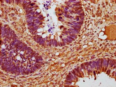 Immunohistochemistry of paraffin-embedded human colon cancer using CSB-PA004812ESR2HU at dilution of 1:100