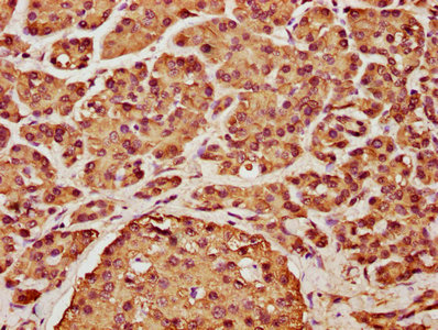 IHC image of CSB-PA004812ESR2HU diluted at 1:225 and staining in paraffin-embedded human pancreatic cancer performed on a Leica BondTM system. After dewaxing and hydration, antigen retrieval was mediated by high pressure in a citrate buffer (pH 6.0). Section was blocked with 10% normal goat serum 30min at RT. Then primary antibody (1% BSA) was incubated at 4°C overnight. The primary is detected by a biotinylated secondary antibody and visualized using an HRP conjugated SP system.