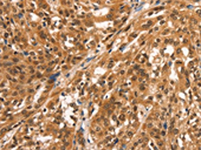 The image on the left is immunohistochemistry of paraffin-embedded Human esophagus cancer tissue using CSB-PA285746(CCNE2 Antibody) at dilution 1/25, on the right is treated with synthetic peptide. (Original magnification: ×200)