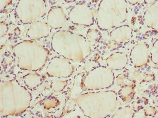 Immunohistochemistry of paraffin-embedded human thyroid tissue using CSB-PA004818ESR1HU at dilution of 1:100