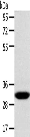 Gel: 10%SDS-PAGE, Lysate: 40 μg, Lane: Human fetal liver tissue, Primary antibody: CSB-PA109166(CCS Antibody) at dilution 1/300, Secondary antibody: Goat anti rabbit IgG at 1/8000 dilution, Exposure time: 40 seconds