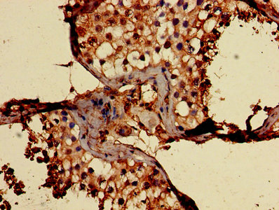 Immunohistochemistry of paraffin-embedded human testis tissue using CSB-PA004947YA01HU at dilution of 1:100