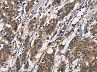 The image on the left is immunohistochemistry of paraffin-embedded Human gastric cancer tissue using CSB-PA130815(CD80 Antibody) at dilution 1/25, on the right is treated with synthetic peptide. (Original magnification: ×200)
