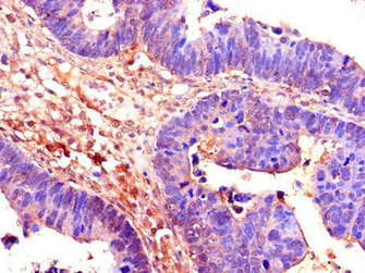 Immunohistochemistry of paraffin-embedded human ovarian cancer using CSB-PA004995LA01HU at dilution of 1:100