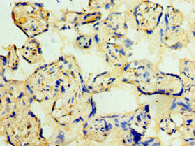 Immunohistochemistry of paraffin-embedded human placenta tissue using CSB-PA017648ESR2HU at dilution of 1:100