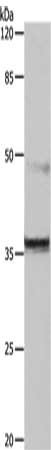 Gel: 10%SDS-PAGE, Lysate: 40 μg, Lane: Jurkat cells, Primary antibody: CSB-PA871419(CDK6 Antibody) at dilution 1/150, Secondary antibody: Goat anti rabbit IgG at 1/8000 dilution, Exposure time: 10 seconds