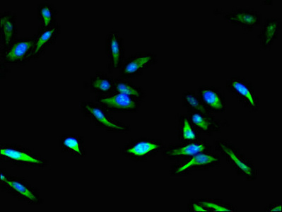 Immunofluorescent analysis of Hela cells using CSB-PA005092LA01HU at dilution of 1:100 and Alexa Fluor 488-congugated AffiniPure Goat Anti-Rabbit IgG(H+L)