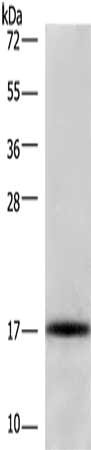 Gel: 6%SDS-PAGE, Lysate: 40 μg, Lane: Raji cells, Primary antibody: CSB-PA644111(CDKN2C Antibody) at dilution 1/325, Secondary antibody: Goat anti rabbit IgG at 1/8000 dilution, Exposure time: 40 seconds