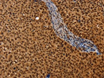 The image on the left is immunohistochemistry of paraffin-embedded Human cervical cancer tissue using CSB-PA129151(CEL Antibody) at dilution 1/40, on the right is treated with synthetic peptide. (Original magnification: ×200)