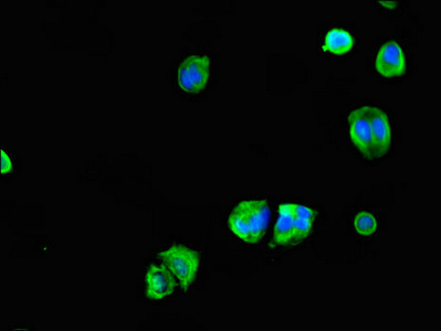 Immunofluorescent analysis of MCF-7 cells using CSB-PA836778LA01HU at dilution of 1:100 and Alexa Fluor 488-congugated AffiniPure Goat Anti-Rabbit IgG(H+L)