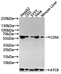 Positive WB detected in: HepG2 whole cell lysate(30μg), LO2 whole cell lysate(30μg), SY5Y whole cell lysate(30μg), Hela whole cell lysate(30μg), Mouse Liver tissue lysate(30μg)