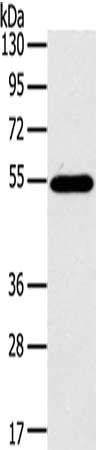 Gel: 8%SDS-PAGE, Lysate: 40 μg, Lane: Mouse thymus tissue, Primary antibody: CSB-PA105996(CFLAR Antibody) at dilution 1/200, Secondary antibody: Goat anti rabbit IgG at 1/8000 dilution, Exposure time: 1 minute