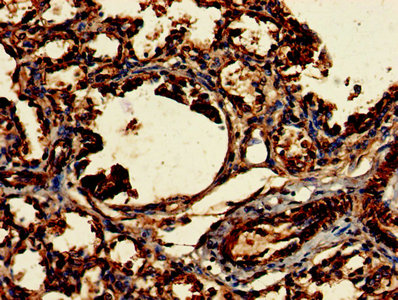 Immunohistochemistry of paraffin-embedded human lung tissue using CSB-PA005584LA01HU at dilution of 1:100