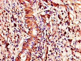 Immunohistochemistry of paraffin-embedded human gastric cancer using CSB-PA818712LA01HU at dilution of 1:100