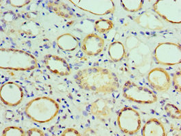 Immunohistochemistry of paraffin-embedded human kidney tissue using CSB-PA880068ESR1HU at dilution of 1:100