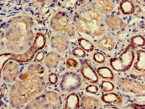Immunohistochemistry of paraffin-embedded human kidney tissue using CSB-PA839305LA01HU at dilution of 1:100
