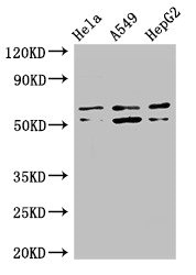 Positive WB detected in: Hela whole cell lysate, A549 whole cell lysate, HepG2 whole cell lysate