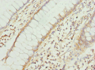 Immunohistochemistry of paraffin-embedded human colon cancer using CSB-PA621520ESR1HU at dilution of 1:100