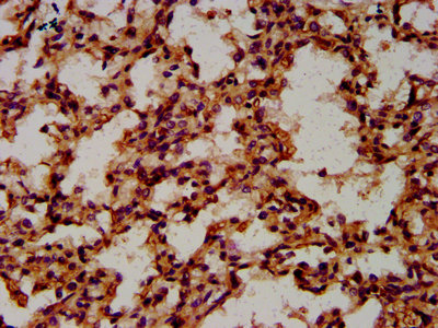IHC image of CSB-PA773062LA01HU diluted at 1:600 and staining in paraffin-embedded human lung tissue performed on a Leica BondTM system. After dewaxing and hydration, antigen retrieval was mediated by high pressure in a citrate buffer (pH 6.0). Section was blocked with 10% normal goat serum 30min at RT. Then primary antibody (1% BSA) was incubated at 4°C overnight. The primary is detected by a biotinylated secondary antibody and visualized using an HRP conjugated SP system.