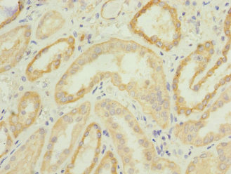 Immunohistochemistry of paraffin-embedded human kidney tissue using CSB-PA005919ESR1HU at dilution of 1:100
