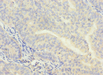 Immunohistochemistry of paraffin-embedded human endometrial cancer using CSB-PA005919ESR1HU at dilution of 1:100