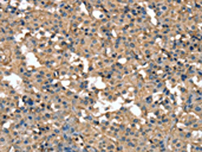 The image on the left is immunohistochemistry of paraffin-embedded Human liver cancer tissue using CSB-PA065723(CR1 Antibody) at dilution 1/25, on the right is treated with synthetic peptide. (Original magnification: ×200)