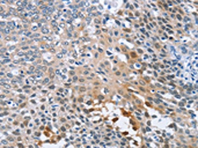 The image on the left is immunohistochemistry of paraffin-embedded Human cervical cancer tissue using CSB-PA168224(CRABP2 Antibody) at dilution 1/20, on the right is treated with fusion protein. (Original magnification: ×200)