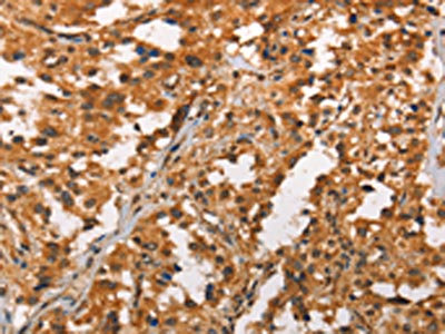 The image on the left is immunohistochemistry of paraffin-embedded Human gastic cancer tissue using CSB-PA831164(CRKL Antibody) at dilution 1/25, on the right is treated with synthetic peptide. (Original magnification: ×200)