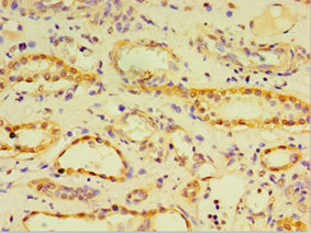 Immunohistochemistry of paraffin-embedded human kidney tissue using CSB-PA006004DSR2HU at dilution of 1:100