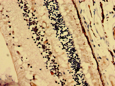 Immunohistochemistry analysis of human eye tissue using CSB-PA006011LA01HU at dilution of 1:100