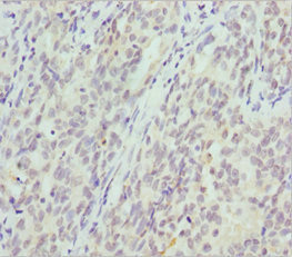 Immunohistochemistry of paraffin-embedded human gastric cancer using CSB-PA006025ESR1HU at dilution of 1:100