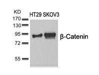 Western blot analysis of extracts from HT29 and SKOV3 cells using b-Catenin(Ab-37) Antibody.