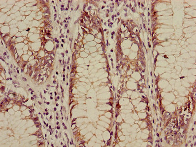 Immunohistochemistry of paraffin-embedded human colon cancer using CSB-PA00174A0Rb at dilution of 1:100