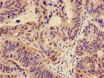 Immunohistochemistry of paraffin-embedded human colon cancer using CSB-PA006172LA01HU at dilution of 1:100