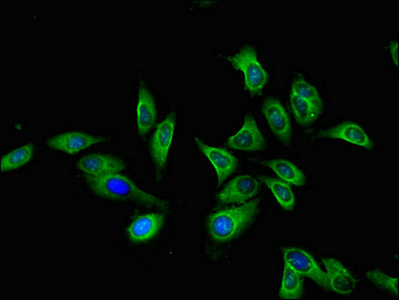 Immunofluorescent analysis of Hela cells using CSB-PA006184LA01HU at dilution of 1:100 and Alexa Fluor 488-congugated AffiniPure Goat Anti-Rabbit IgG(H+L)