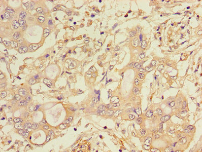 Immunohistochemistry of paraffin-embedded human pancreatic cancer using CSB-PA006184LA01HU at dilution of 1:100