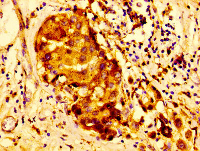 Immunohistochemistry of paraffin-embedded human breast cancer using CSB-PA02129A0Rb at dilution of 1:100