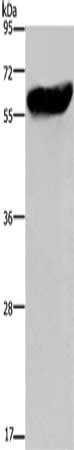 Gel: 8%SDS-PAGE, Lysate: 40 μg, Lane: Mouse liver tissue, Primary antibody: CSB-PA186108(CYP2E1 Antibody) at dilution 1/300, Secondary antibody: Goat anti rabbit IgG at 1/8000 dilution, Exposure time: 20 seconds