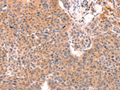 The image on the left is immunohistochemistry of paraffin-embedded Human liver cancer tissue using CSB-PA821404(DAZ4 Antibody) at dilution 1/50, on the right is treated with fusion protein. (Original magnification: ×200)