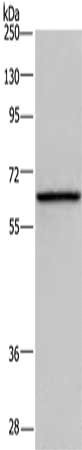 Gel: 8%SDS-PAGE, Lysate: 40 μg, Lane: Mouse liver tissue, Primary antibody: CSB-PA958803(DBH Antibody) at dilution 1/200, Secondary antibody: Goat anti rabbit IgG at 1/8000 dilution, Exposure time: 10 seconds