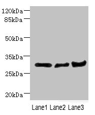 別名:Carbonyl reductase 2 antibody; Carbonyl reductase II antibody; DCR antibody; Dcxr antibody; DCXR_HUMAN antibody; Dicarbonyl and L xylulose reductase antibody; Dicarbonyl L xylulose reductase antibody; Dicarbonyl/ L xylulose reductase antibody; Dicarbonyl/L-xylulose reductase antibody; HCR2 antibody; HCRII antibody; Human carbonyl reductase 2 antibody; kiDCR antibody; Kidney dicarbonyl reductase antibody; L xylulose reductase antibody; L-xylulose reductase antibody; P34H antibody; PNTSU antibody; SDR20C1 antibody; Short chain dehydrogenase/reductase family 20C member 1 antibody; Sperm surface protein P34H antibody; XR antibody