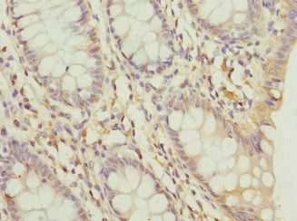 Immunohistochemistry of paraffin-embedded human colon cancer using CSB-PA890695DSR1HU at dilution of 1:100